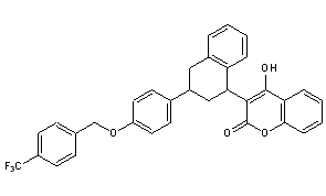 CAS Name: 4-Hydroxy-3-[1,2,3,4-tetrahydro-3-[4-[[4-(trifluoromethyl)phenyl]methoxy]phenyl]-1-naphthalenyl]-2H-1-benzopyran-2-one