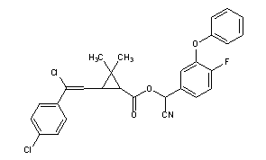 CAS Name: 3-[2-Chloro-2-(4-chlorophenyl)ethenyl]-2,2-dimethylcyclopropanecarboxylic acid cyano(4-fluoro-3-phenoxyphenyl)methyl ester