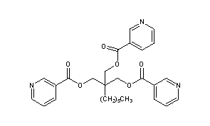 Additional Names: nicotinic acid triester with 2-hexyl-2-(hydroxymethyl)-1,3-propanediol; 2-hexyl-2-(hydroxymethyl)-1,3-propanediol trinicotinate; 2,2-dihydroxymethyl-n-octanol trinicotinate; 1,1,1-trimethylolheptane trinicotinate; 1,1,1-(trihydroxymethyl)heptane trinicotinate