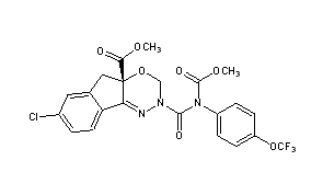 CAS Name: (4aS)-7-Chloro-2,5-dihydro-2-[[(methoxycarbonyl)[4-(trifluoromethoxy)phenyl]amino]carbonyl]indeno[1,2-e][1,3,4]oxadiazine-4a(3H)-carboxylic acid methyl ester