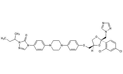 CAS Name: 4-[4-[4-[4-[[2-(2,4-Dichlorophenyl)-2-(1H-1,2,4-triazol-1-ylmethyl)-1,3-dioxolan-4-yl]methoxy]phenyl]-1-piperazinyl]phenyl]-2,4-dihydro-2-(1-methylpropyl)-3H-1,2,4-triazol-3-one