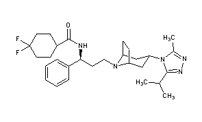 CAS Name: 4,4-Difluoro-N-[(1S)-3-[(3-exo)-3-[3-methyl-5-(1-methylethyl)-4H-1,2,4-triazol-4-yl]-8-azabicyclo[3.2.1]oct-8-yl]-1-phenylpropyl]-cyclohexanecarboxamide