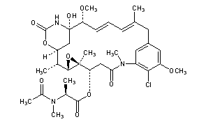Literature References: Anti-leukemic ansa macrolide, member of a class of compounds that includes the rifamycins, streptovaricins etc. First ansa compound isolated from a plant rather than produced by a microorganism. Isoln from Maytenus ovatus Loes., Celastraceae and structure elucidation: S. M. Kupchan et al., J. Am. Chem. Soc. 94, 1354 (1972); S. M. Kupchan, DE 2241418 (1974); S. M. Kupchan et al., US 3896111 (1975 to Research Corp.). Crystal structure and absolute configuration of the (3-bromopropyl) ether: R. F. Bryan et al., J. Chem. Soc. Perkin Trans. 2 1973, 897. Synthetic studies: A. I. Meyers et al., Tetrahedron Lett. 1974, 717; 1975, 1745, 1749; E. J. Corey, M. G. Bock, ibid. 1975, 2643; E. J. Corey et al., ibid. 1978, 1051; A. I. Meyers, J. P. Hudspeth, ibid. 22, 3925 (1981). Total synthesis of (±)-form: A. I. Meyers et al., J. Am. Chem. Soc. 102, 6597 (1980); of naturally occurring (-)-form: E. J. Corey et al., ibid. 6613. Cytotoxic action: M. K. Wolpert-Defilippes, Biochem. Pharmacol. 24, 751 (1975). Clinical studies in carcinoma, melanoma: J. A. Neidhart et al., Cancer Treat. Rep. 64, 675 (1980); D. L. Ahmann et al., ibid. 721. Toxicity: G. M. Mugera, J. M. Ward, ibid. 61, 1333 (1977).