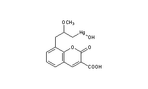 CAS Name: [3-(3-Carboxy-2-oxo-2H-1-benzopyran-8-yl)-2-methoxypropyl]hydroxymercurate(1-) hydrogen