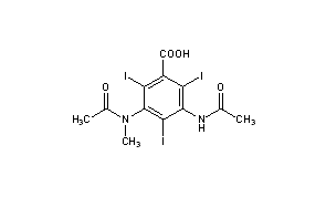 Additional Names: 3-acetamido-2,4,6-triiodo-5-(N-methylacetamido)benzoic acid; N-methyl-3,5-diacetamido-2,4,6-triiodobenzoic acid