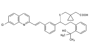 CAS Name: 1-[[[(1R)-1-[3-[(1E)-2-(7-Chloro-2-quinolinyl)ethenyl]phenyl]-3-[2-(1-hydroxy-1-methylethyl)phenyl]propyl]thio]methyl]cyclopropaneacetic acid