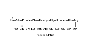Literature References: A gastrointestinal peptide hormone whose existence was postulated during experimental chemical stimulation of canine duodenum: J. C. Brown et al., Gastroenterology 50, 333 (1966). Motilin stimulates gastric antrum, duodenum, and colon; it has been reported to be about 50 times more powerful than acetylcholine in its effects on sensitive tissue: U. Strunz et al., ibid. 68, 1485 (1975). In man it is found primarily in the upper small intestine. Although its effects are not known completely, it plays a role in increasing gastric motility and stimulating pepsin output and may also be important in regulating the interdigestive myoelectric complex. Porcine motilin, which contains 22 amino acids, has been isolated from mucosa of hog small intestine: J. C. Brown et al., Can. J. Physiol. Pharmacol. 49, 399 (1971). Purification, amino acid composition, C-terminal residue: eidem, Gastroenterology 62, 401 (1972). Amino acid sequence: eidem, Can. J. Biochem. 51, 533 (1973); revised sequence: H. Schubert, J. C. Brown, ibid. 52, 7 (1974). First synthetic work: E. Wünsch et al., Z. Naturforsch. 28C, 235 (1973). Synthesis of the complete docosapeptide corresponding to porcine motilin: H. Yajima et al., Chem. Commun. 1975, 159. Alternate syntheses: Y. Kai et al., Chem. Pharm. Bull. 23, 2346 (1975); S. Yamada et al., J. Am. Chem. Soc. 97, 7174 (1975); E. Izeboud, H. C. Beyerman, Rec. Trav. Chim. 99, 124 (1980). Solid phase synthesis: N. Ikota et al., Chem. Pharm. Bull. 28, 3347 (1980); D. H. Coy et al., Peptides 3, 137 (1982). Radioimmunoassay: J. R. Dryburgh, J. C. Brown, Gastroenterology 68, 1169 (1975). Identification of motilin endocrine cells: J. M. Polak et al., Gut 16, 225 (1975). Rodent and canine motilin differ from porcine; human motilin has not yet been purified, although its immunologic properties suggest strong similarity to porcine motilin. The presence of a larger motilin has also been detected immunologically, see J. M. Polak, A. M. J. Buchan, Gastroenterology 76, 1065 (1979). Reviews: N. D. Christofides et al., "Physiology of Motilin" in Gut Hormones, S. R. Bloom, Ed. (Churchill Livingstone, Edinburgh, 1978) pp 343-350; S. R. Bloom, J. M. Polak, Clin. Endocrinol. Metab. 8, 401-411 (1979); V. Mutt, Vitam. Horm. 39, 231-426 (1982). |