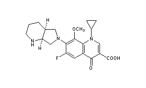 CAS Name: 1-Cyclopropyl-6-fluoro-1,4-dihydro-8-methoxy-7-[(4aS,7aS)-octahydro-6H-pyrrolo[3,4-b]pyridin-6-yl]-4-oxo-3-quinolinecarboxylic acid