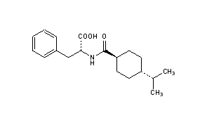 Additional Names: (-)-N-(trans-4-isopropylcyclohexyl-1-carbonyl)-D-phenylalanine