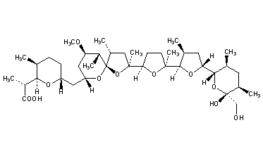 Literature References: Polyether antibiotic which affects ion transport and ATPase activity in mitochondria; produced by Streptomyces hygroscopicus E-749 and structurally related to monensin, q.v. Isoln, characterization, production: R. L. Harned et al., Antibiot. Chemother. 1, 594 (1951); J. Berger et al., J. Am. Chem. Soc. 73, 5295 (1951); J. Shoji et al., J. Antibiot. 21, 402 (1968). Structure: L. K. Steinrauf et al., Biochem. Biophys. Res. Commun. 33, 29 (1968); T. Kubota et al., Chem. Commun. 1968, 1541; T. Kubota, S. Matsutani, J. Chem. Soc. C 1970, 695. Use in coccidiosis: M. Gorman, R. L. Hamill, US 3555150 (1971 to Lilly). Effect on calcium uptake and membrane potential in mitochondria: H. Rottenberg, A. Scarpa, Biochemistry 13, 4811 (1974). Stimulation of ATPase activity: H. Sze, Proc. Natl. Acad. Sci. USA 77, 5904 (1980). Approach to synthesis: C. P. Holmes, P. A. Bartlett, J. Org. Chem. 54, 98 (1989).