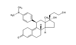 Additional Names: 11b-(4-dimethylaminophenyl)-17a-hydroxy-17b-(3-hydroxypropyl)-13a-methyl-4,9-gonadien-3-one