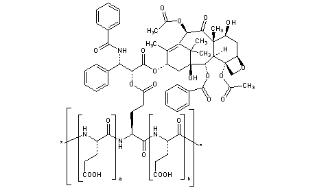 Literature References: Biodegradable polymer drug conjugate resulting from the random condensation of L-polyglutamic acid and paclitaxel, q.v., which has on average 10.4 monomeric glutamic acid units per paclitaxel-glutamate conjugate unit. Mol wt ~48 kDa. Prepn: C. Li et al., Cancer Res. 58, 2404 (1998). See also: eidem, US 5977163 (1999 to PG-TXL Co.). In vitro activities in comparison with paclitaxel: A. S. Multani et al., Anticancer Res. 17, 4269 (1997); E. A. Oldham et al., Int. J. Oncol. 16, 125 (2000). Irradiation enhanced tumor specificity: C. Li et al., Clin. Cancer Res. 6, 2829 (2000); L. Milas et al., Int. J. Radiat. Oncol. Biol. Phys. 55, 707 (2003). Review of properties and preclinical characterization: J. W. Singer et al., Adv. Exp. Med. Biol. 519, 81-99 (2003); of clinical development: J. W. Singer, J. Controlled Rel. 109, 120-126 (2005); M. Man, H. Rugo, IDrugs 8, 739-754 (2005).