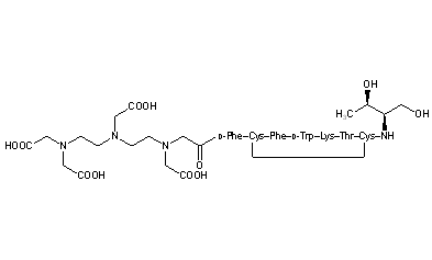 CAS Name: N-[2-[[2-[Bis(carboxymethyl)amino]ethyl](carboxymethyl)amino]ethyl]-N-(carboxymethyl)glycyl-D-phenylalanyl-L-cysteinyl-L-phenylalanyl-D-tryptophyl-L-lysyl-L-threonyl-N-[(1R,2R)-2-hydroxy-1-(hydroxymethyl)propyl]-L-cysteinamide cyclic (3®8)-disulfide