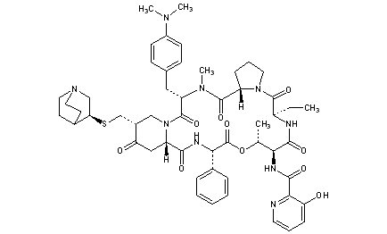 CAS Name: 4-[4-(Dimethylamino)-N-methyl-L-phenylalanine]-5-[(2S,5R)-5-[[[(3S)-1-azabicyclo[2.2.2]oct-3-yl]thio]methyl]-4-oxo-2-piperidinecarboxylic acid]virginiamycin S1