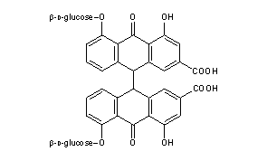 CAS Name: (9R,9¢S)-5,5¢-Bis(b-D-glucopyranosyloxy)-9,9¢,10,10¢-tetrahydro-4,4¢-dihydroxy-10,10¢-dioxo[9,9¢-bianthracene]-2,2¢-dicarboxylic acid