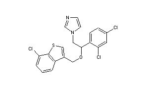 Additional Names: (±)-1-[2,4-dichloro-b-[(7-chlorobenzo[b]thien-3-yl)methoxy]phenethyl]imidazole; 7-chloro-3-[1-(2,4-dichlorophenyl)-2-(1H-imidazol-1-yl)ethoxy-methyl]benzo[b]thiophene