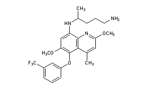 Additional Names: 8-[(4-amino-1-methylbutyl)amino]-2,6-dimethoxy-4-methyl-5-[3-(trifluoromethyl)phenoxy]quinoline