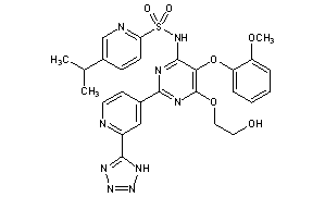 Additional Names: 5-isopropylpyridine-2-sulfonic acid 6-(2-hydroxyethoxy)-5-(2-methoxyphenoxy)-2-(2-1H-tetrazol-5-ylpyridin-4-yl)pyrimidin-4-ylamide