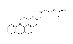 Additional Names: 2-chloro-10-[3-[1-(2-acetoxyethyl)-4-piperazinyl]propyl]phenothiazine; 10-[3-[1-(2-acetoxyethyl)-4-piperazinyl]propyl]-2-chlorophenothiazine; N-(b-acetoxyethyl)-N¢-[g-(2¢-chloro-10¢-phenothiazinyl)propyl]piperazine; 1-(2-acetoxyethyl)-4-[3-(2-chloro-10-phenothiazinyl)propyl]piperazine