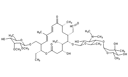 Properties: Crystals from water, mp 128-132°. [a]D25 -46° (c = 2 in methanol). uv max: 282 nm (E1%1cm 245). Soly in water at 25°: 5 mg/ml. Sol in lower alcohols, esters and ketones, in chlorinated hydrocarbons, benzene, ether. Solns are stable at pH 4-9; at pH <4 another active compd, desmycosin is formed.
