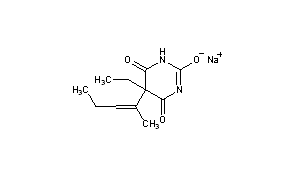 CAS Name: 5-Ethyl-5-(1-methyl-1-butenyl)-2,4,6(1H,3H,5H)-pyrimidinetrione sodium salt