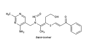CAS Name: N-[(4-Amino-2-methyl-5-pyrimidinyl)methyl]-N-[4-hydroxy-1-methyl-2-[(3-oxo-3-phenyl-1-propenyl)thio]-1-butenyl]formamide