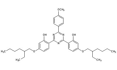 CAS Name: 2,2¢-[6-(4-Methoxyphenyl)-1,3,5-triazine-2,4-diyl]bis[5-[(2-ethylhexyl)oxy]phenol]