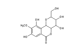 Additional Names: 4-methoxy-2-[tetrahydro-3,4,5-trihydroxy-6-(hydroxymethyl)pyran-2-yl]-a-resorcylic acid d-lactone; bergenit; vakerin; ardisic acid B; cuscutin; peltophorin