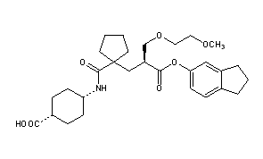 CAS Name: [4(S)-cis]-4-[[[1-[3-[(2,3-Dihydro-1H-inden-5-yl)oxy]-2-[(2-methoxyethoxy)methyl]-3-oxopropyl]cyclopentyl]carbonyl]amino]cyclohexanecarboxylic acid