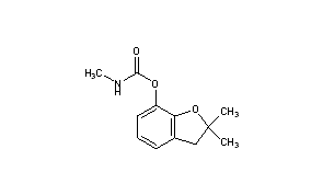 Additional Names: methyl carbamic acid 2,3-dihydro-2,2-dimethyl-7-benzofuranyl ester; 2,2-dimethyl-2,3-dihydro-7-benzofuranyl-N-methylcarbamate; 2,2-dimethyl-7-coumaranyl N-methylcarbamate
