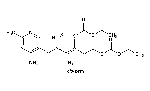 CAS Name: Thiocarbonic acid O-ethyl ester, S-ester with N-[(4-amino-2-methyl-5-pyrimidinyl)methyl]-N-(4-hydroxy-2-mercapto-1-methyl-1-butenyl)formamide ethyl carbonate (ester)