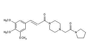 Additional Names: 1-[(1-pyrrolidinylcarbonyl)methyl]-4-(3,4,5-trimethoxycinnamoyl)piperazine; 1-[4-[2-oxo-2-(1-pyrrolidinyl)ethyl]-1-piperazinyl]-3-(3,4,5-trimethoxyphenyl)-2-propen-1-one; 1-[4-[(3¢,4¢,5¢-trimethoxycinnamoyl)-1-piperazinyl]acetyl]pyrrolidine