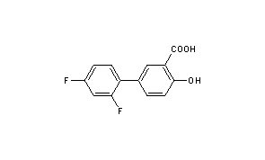 Additional Names: 2¢,4¢-difluoro-4-hydroxy-3-biphenylcarboxylic acid; 2¢,4¢-difluoro-4-hydroxy-[1¢,1-diphenyl]-3-carboxylic acid; 2-(hydroxy)-5-(2,4-difluorophenyl)benzoic acid; 5-(2,4-difluorophenyl)salicylic acid