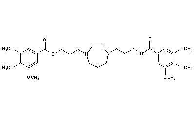 Additional Names: 3,4,5-trimethoxybenzoic acid diester with tetrahydro-1H-1,4-diazepine-1,4(5H)-dipropanol; 1,4-bis[3-(3,4,5-trimethoxybenzoyloxy)propyl]perhydro-1,4-diazepine; N,N¢-bis[3-(3,4,5-trimethoxybenzoyloxy)propyl]homopiperazine; N,N¢-(bis-w-hydroxypropyl)homopiperazine 3,4,5-trimethoxybenzoate (diester)