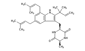 CAS Name: (3S-cis)-3-[[2-(1,1-Dimethyl-2-propenyl)-5,7-bis(3-methyl-2-butenyl)-1H-indol-3-yl]methyl]-6-methyl-2,5-piperazinedione
