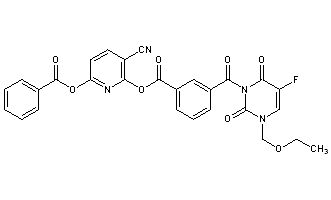 CAS Name: 3-[[3-(Ethoxymethyl)-5-fluoro-3,6-dihydro-2,6-dioxo-1(2H)-pyrimidinyl]carbonyl]benzoic acid 6-(benzoyloxy)-3-cyano-2-pyridinyl ester