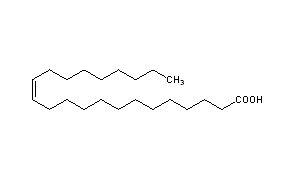 Literature References: A monoethenoid acid found in the seed fats of Cruciferae and Tropaeolaceae. It constitutes 40 to 50% of the total fatty acids of rapeseed, mustard and wallflower seed, and it represents up to 80% of fatty acids of nasturtium seeds, cf. K. S. Markley, Fatty Acids Part I (Interscience, New York, 2nd ed., 1960) p 138-139. Prepn of a crude product by alkaline hydrolysis of rapeseed oil: Noller, Talbot, Org. Synth. coll. vol. II, 258 (1943). A purer product is obtained by the method of Dorée and Pepper, J. Chem. Soc. 1942, 477, which involves a fractional precipitation and crystallization. Prepn of a pure product by acid soap crystallization: Chobanov et al., Chem. Ind. (London) 1965, 606. Synthesis: Bowman, J. Chem. Soc. 1950, 177, 325; Bounds et al., ibid. 1953, 2393. Treatment with nitric acid yields the trans isomer, brassidic acid, q.v.: Dorée, Pepper, loc. cit. Brief review: E. Lower, Manuf. Chem. 56(6), 61-63 (1985).