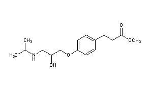 Additional Names: (±)-methyl 3-[4-[2-hydroxy-3-(isopropylamino)propoxy]phenyl]propionate; methyl p-[2-hydroxy-3-(isopropylamino)propoxy]hydrocinnamate