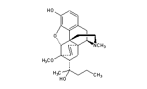 Additional Names: tetrahydro-7a-(1-hydroxy-1-methylbutyl)-6,14-endo-ethenooripavine; 7,8-dihydro-7a-[1(R)-hydroxy-1-methylbutyl]-O6-methyl-6,14-endo-ethenomorphine; 7a-[1(R)-hydroxy-1-methylbutyl]-6,14-endo-ethenotetrahydrooripavine; 19-propylorvinol; tetrahydro-7a-(2-hydroxy-2-pentyl)-6,14-endo-ethenooripavine