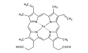 CAS Name: (SP-4-2)-[7,12-Diethenyl-3,8,13,17-tetramethyl-21H,23H-porphine-2,18-dipropanoato(4-)-N21,N22,N23,N24]ferrate(2-) dihydrogen