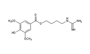 Additional Names: 4-hydroxy-3,5-dimethoxybenzoic acid d-guanidinobutyl ester; syringic acid d-guanidinobutyl ester; [4-(4-hydroxy-3,5-dimethoxybenzoyloxy)butyl]guanidine; 4-guanidino-1-butanol syringate