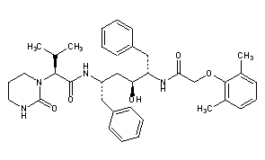 Additional Names: (aS)-tetrahydro-N-[(aS)-a-[(2S,3S)-2-hydroxy-4-phenyl-3-[2-(2,6-xylyloxy)acetamido]butyl]phenethyl]-a-isopropyl-2-oxo-1(2H)-pyrimidineacetamide; (2S,3S,5S)-2-(2,6-dimethylphenoxyacetyl)amino-3-hydroxy-5-[2S-(1-tetrahydropyrimid-2-onyl)-3-methylbutanoyl]amino-1,6-diphenylhexane