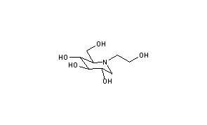 Additional Names: N-(2-hydroxyethyl)moranoline; (2R,3R,4R,5S)-1-(2-hydroxyethyl)-2-(hydroxymethyl)-3,4,5-piperidinetriol; N-(b-hydroxyethyl)-1-deoxynojirimycin