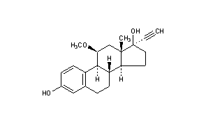 Additional Names: 3,17-dihydroxy-11b-methoxy-19-nor-17a-pregna-1,3,5-trien-20-yne; 17a-ethynyl-11b-methoxyestra-1,3,5(10)-triene-3,17b-diol; 11b-methoxy-17a-ethynyl-D1,3,5(10)-estratriene-3,17b-diol; 11b-methoxy-17a-ethynylestradiol