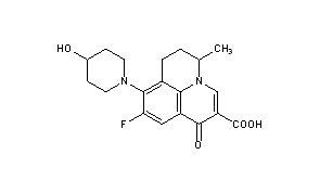 CAS Name: 9-Fluoro-6,7-dihydro-8-(4-hydroxy-1-piperidinyl)-5-methyl-1-oxo-1H,5H-benzo[ij]quinolizine-2-carboxylic acid