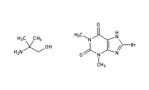 Additional Names: 8-bromotheophylline compd with 2-amino-2-methyl-1-propanol (1:1); 2-amino-2-methyl-2-propanol 8-bromotheophyllinate