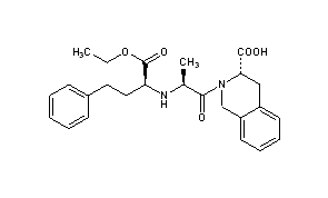 CAS Name: (3S)-2-[(2S)-2-[[(1S)-1-(Ethoxycarbonyl)-3-phenylpropyl]amino]-1-oxopropyl]-1,2,3,4-tetrahydro-3-isoquinolinecarboxylic acid