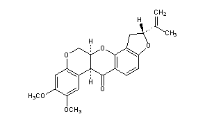 Literature References: Principal insecticidal constituent of derris root, cubé, etc. Powerful inhibitor of mitochondrial electron transport. Isoln from Lonchocarpus nicou (Aubl.) DC., Leguminosae: Geoffrey, Ann. Inst. Colon. Marseille 2, 1 (1895). Review of structure: La Forge et al., Chem. Rev. 12, 181 (1933); Butenandt, McCartney, Ann. 494, 17 (1932); King, Annu. Rep. Prog. Chem. 29, 186 (1932). Absolute configuration: Büchi et al., J. Chem. Soc. 1961, 2843; Nakazaki, Arakawa, Bull. Chem. Soc. Jpn. 34, 1246 (1961); Begley et al., Chem. Commun. 1975, 850. NMR spectrum: Crombie, Lown, ibid. 1962, 775. Total synthesis: Miyano et al., Agric. Biol. Chem. 25, 673 (1961); Miyano, J. Am. Chem. Soc. 87, 3958 (1965). Alternate synthesis: Crombie et al., J. Chem. Soc. Perkin Trans. 1 1973, 1277, eidem, Chem. Commun. 1979, 1142; I. Sasaki, K. Yamashita, Agric. Biol. Chem. 43, 137 (1979). Synthesis of stereoisomers: Unai, Yamamoto, ibid. 37, 897 (1973). Toxicology: Santi, Toth, Farmaco Ed. Sci. 20, 270 (1965). Toxicity data: J.-I. Fukami et al., Science 155, 713 (1967). Review: H. Fukami, M. Nakajima in Naturally Occurring Insecticides, M. Jacobson, D. G. Crosby, Eds. (Dekker, New York, 1971) pp 71-97; S. B. Soloway, Environ. Health Perspect. 14, 109-117 (1976); T. J. Haley, J. Environ. Pathol. Toxicol. 1, 315-337 (1978).