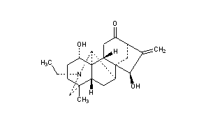 Literature References: From Aconitum songoricum Popov, Ranunculaceae: Yunusov, J. Gen. Chem. USSR 18, 515 (1948); Kuzovkov, ibid. 23, 504 (1953); 25, 2006 (1955). Identity with napellonine: Kuzovkov, Zh. Obshch. Khim. 28, 2283 (1958); 29, 1728 (1959). Structure: Sugasawa, Chem. Pharm. Bull. 9, 889, 897 (1961). Absolute configuration: Okamoto et al., ibid. 13, 1270 (1965). Synthesis of the aromatic intermediate: Wiesner et al., Can. J. Chem. 51, 3978 (1973). Pharmacology: Sadritdinov, Farmakol. Alk. No. 312 (1965), C.A. 66, 93772d (1967). Mass spectra data: Yunusov et al., Khim. Prir. Soedin. 6, 101 (1970), C.A. 73, 131178u (1970). Pharmacology and toxicity data: N. G. Bisset, J. Ethnopharmacol. 4, 247-336 (1981).