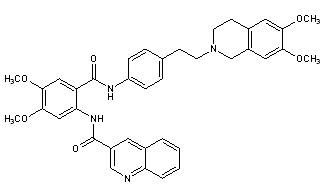 CAS Name: N-[2-[[[4-[2-(3,4-Dihydro-6,7-dimethoxy-2(1H)-isoquinolinyl)ethyl]phenyl]amino]carbonyl]-4,5-dimethoxyphenyl]-3-quinolinecarboxamide